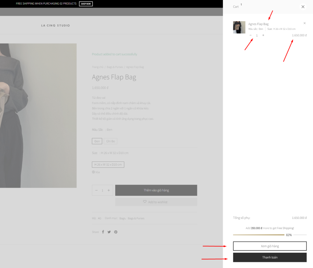 Quý khách lựa chọn chi tiết thuộc tính của sản phẩm muốn mua (màu sắc, kích thước, số lượng..) sau đó nhấp vào nút “Thêm vào giỏ hàng”